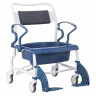 Кресло-стул с санитарным оснащением пассивного типа. Благодаря специальной конструкции рамы данное кресло-стул можно использовать в стандартных туалетных комнатах. Эта модель оснащена откидными подлокотниками.