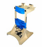Опора для стояния используется для фиксации в правильном вертикальном положении пользователя со слабым тонусом мышц, для развития у него навыков контроля положения тела. Изделие имеет съемные и регулируемые спинодержатель-подголовник, столик, тазобедренное и нагрудное крепления, абдуктор и независимые регулируемые в 3-х направлениях коленоупоры. Регулируемые крепления для стоп (подпяточники), которые могут быть поставлены в нужное положение «на ширину плеч», удерживают стопы в правильном положении. Опора установлена на колесах, задняя пара колес имеет тормоза Мягкие элементы на поролоне, обтянуты искусственной кожей.