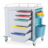 Стол манипуляционный трёхполочный, сделанный целиком из пластика, с трёхсторонними боковыми ограждениями на всех полках